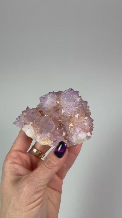 Cactus amethist, ook wel bekend als Spirit Kwarts, is een bijzondere edelsteen die opvalt door zijn unieke kristalstructuur. De steen bestaat uit een hoofd kristal met daaromheen talloze kleine kristalletjes, wat zorgt voor een opvallend “cactusachtig” uiterlijk.
