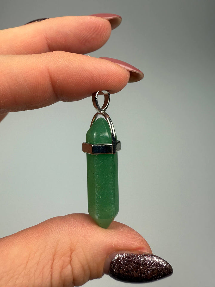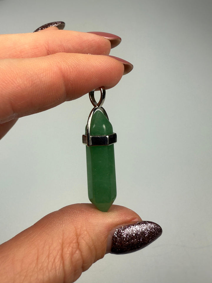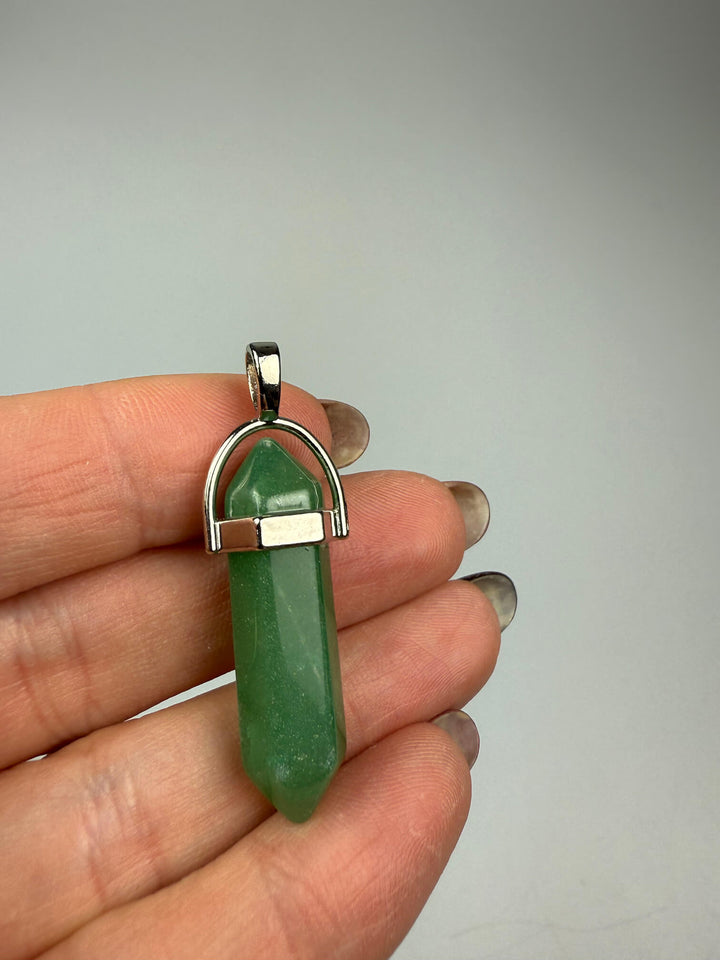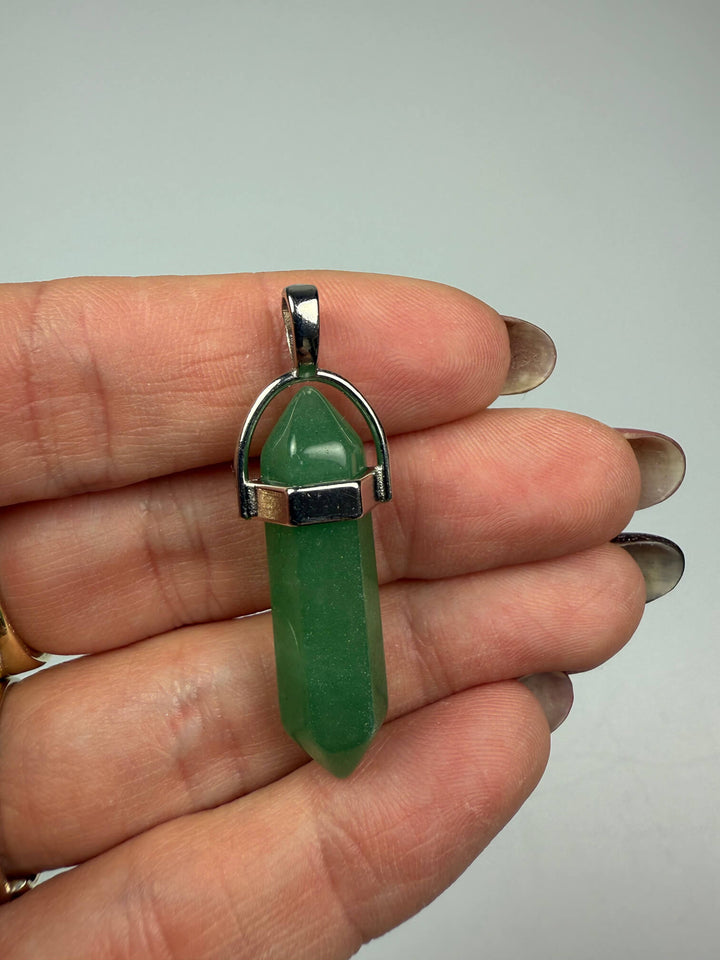 Groene aventurijn dubbeleinder hanger: een kalmerende edelsteenhanger met aan beide uiteinden een punt, die geluk, optimisme en emotionele balans bevordert.
