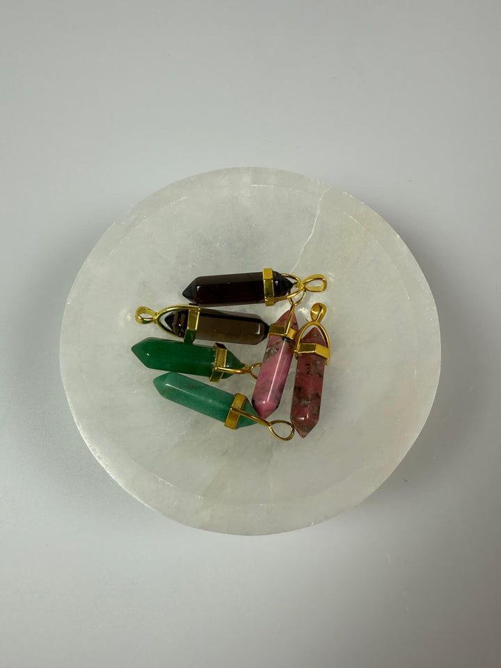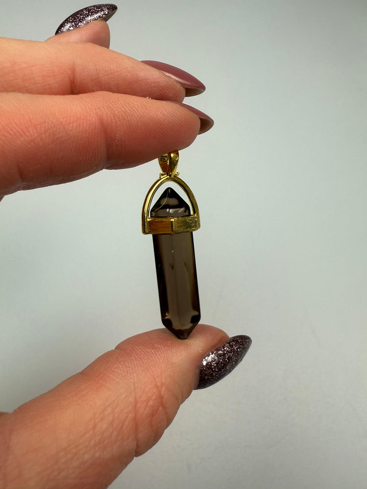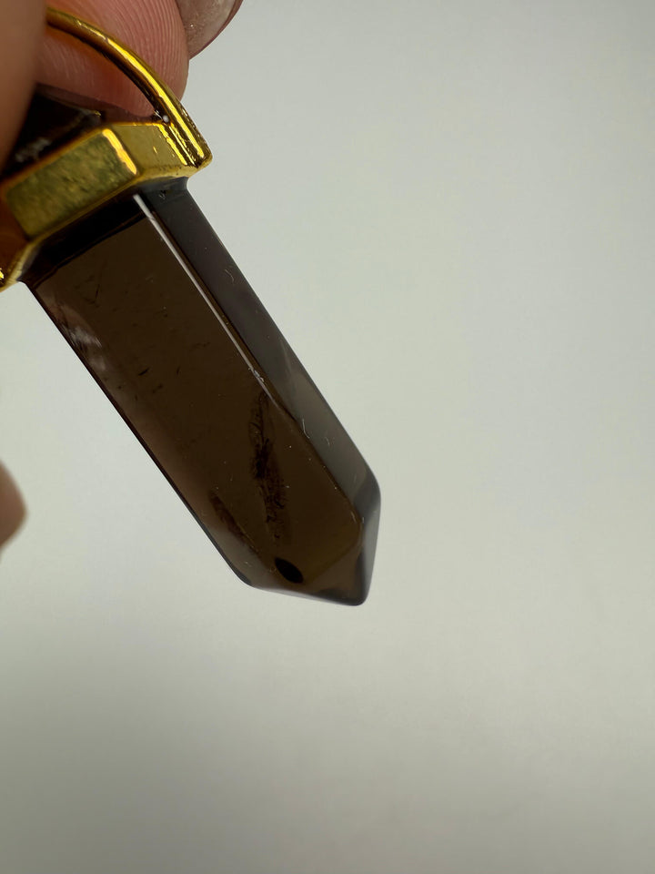 Rookkwarts dubbeleinder hanger: een beschermende edelsteenhanger met aan beide uiteinden een punt wat de energie versterkt, die helpt negatieve energie te gronden en rust en helderheid te bevorderen.